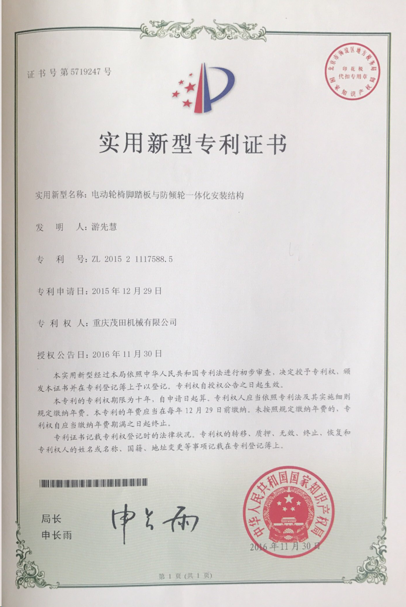 電動(dòng)輪椅腳踏板與防傾輪一體化安裝結(jié)構(gòu)