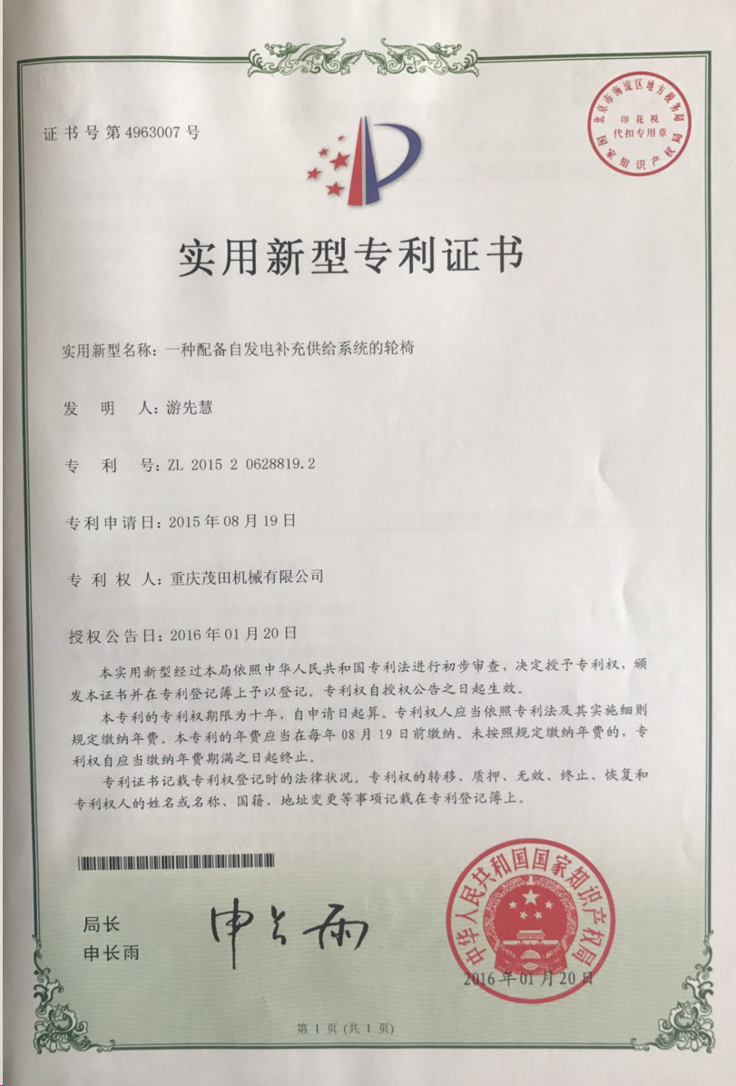 一種配備自發(fā)電補(bǔ)充供給系統(tǒng)的輪椅