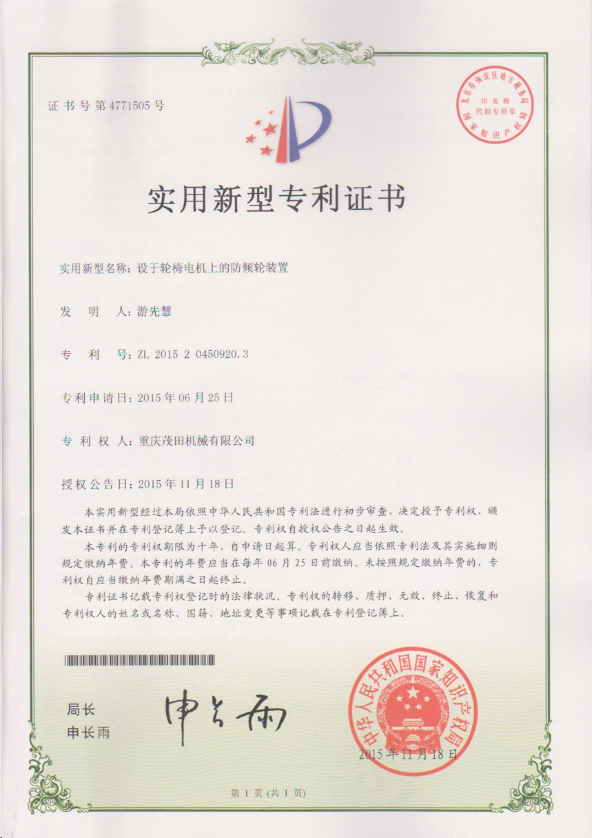 設(shè)于輪椅電機(jī)上的防傾輪裝置